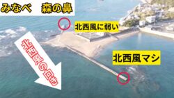 釣り考察 北西風に弱い みなべ町 森の鼻(もりのはな)地磯 真正面から爆風を受けます
