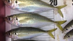 波止釣り・サーフ釣り釣果 白浜見草漁港のアジは昼3時から釣れ、青アジの群れに下には良型のマアジがいる