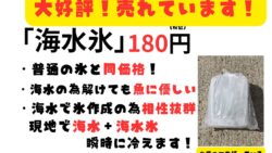 お知らせ 通常の氷を上回る勢いで、売れはじめた「海水氷」。真水より良く冷え、魚に優しいのが特徴。