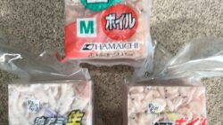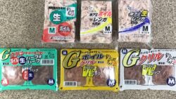 釣具、エサ紹介 沖アミサシエサはボイルと生、レンガブロックと不凍液に浸けた加工エサがあります。グレ釣りつけエサ特徴紹介。