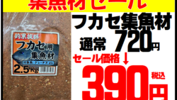 お知らせ フカセ釣り用集魚剤、通常720円が390円。セール中。