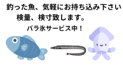 お知らせ 魚、アオリイカ、お持ち込みの方にバラ氷サービスしています!