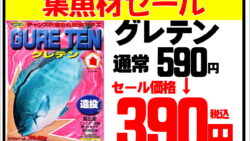 お知らせ みなべ店特売グレテン在庫あります。お急ぎください。ヒロキュー・グレゼロ37%セール集魚剤セール。
