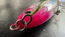 釣具、エサ紹介 溶接リング+スプリットリングの組み合わせは、ルアーの交換の容易さと、アクションの自由度が広がるところにあります。