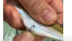 釣りビギナー アジがアオリイカに捕らえられて1分ほど、竿先に小刻みに振動がありますが、これは暴れている状態。