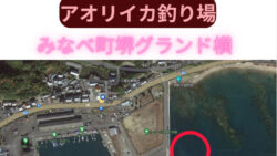 釣り場紹介 みなべ店グランド横は、冬の季節風北西の風裏になるアオリイカ釣り場ポイント。