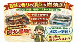 魚料理 魚の直火焼きなら、うま味と香りは炭焼きがベスト。 ただし手間・時間・コストがかかる理由
