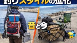 釣りビギナー 背負子→キャリー→アウトドアワゴン、パイプイスも昔は安物→今やキャンプ顔負けの優れものを使う人は多い。