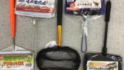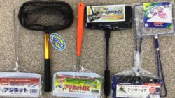 お知らせ アオリイカ・ヤエン、ウキ釣りのお供、アジすくい網各種あります。
