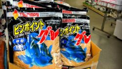 釣具、エサ紹介 寒グレ釣り時によく売れる、パン粉とヌカパン(素ヌカとパン粉を合わせたもの)は、共に2キロ入り。