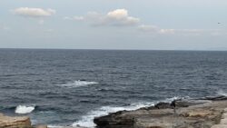 お知らせ 今朝の白浜千畳敷は風が強く吹いています。 波はそれほど高くありません