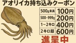 未分類 【アオリイカ持ち込みキャンペーン】冬季も絶好調!釣果報告でクーポン進呈中!