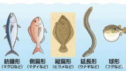 魚のアレコレ 魚の形は基本5パターン。体形を知れば「住処」と「泳ぎ」が見えてくる。