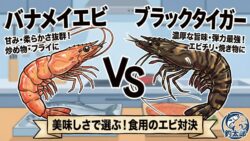 雑学 【徹底比較】ブラックタイガーとバナメイエビの違い!美味しいのはどっち?価格や味を分かりやすく解説