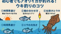 アオリイカ生態、釣り情報関連 【ウキ釣りでアオリイカを釣るコツ】初心者でも釣果アップ!場所とタイミングを徹底解説!