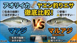 アオリイカ生態、釣り情報関連 マアジVSマルアジ。 アオリイカのヤエン釣りで使うならどっちが有利か。