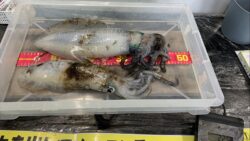 アオリイカ釣果 4/2 天神崎 アオリイカ2杯で2250gの釣果 ヤエン釣り