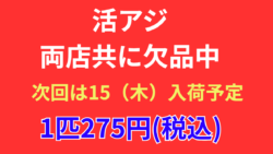 お知らせ 15(木)活アジ入荷予定です。1匹275円(税込)。青アジ数匹に1匹入るかもれません。