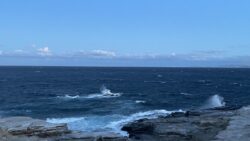 お知らせ 白浜千畳敷の海況。晴れていますが時化ています。