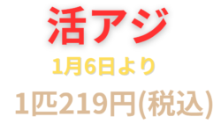 アオリイカ生態、釣り情報関連 活アジ1匹219円(税込)。1月6日から値上げとなります。